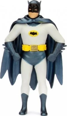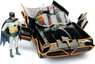 Was ist besser als Batman? Genau, die Vintage-Version des wohl coolsten DC-Superhelden! Passend dazu hat Batman noch sein nostalgisches Batmobile von 1966 mitgebracht. Die Türen lassen sich sogar öffnen, damit der Held elegant Platz nehmen kann. Die Figur ist aus hochwertigem Druckguss-Kunststoff gefertigt und übersteht daher einige Abenteuer, während der Wagen mit freilaufenden Rädern ein echter Blickfang ist.