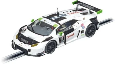 volle Kraft voraus mit dem Lamborghini Huracán. Dieser Flitzer gibt selbst in den Kurven richtig Gas und wird zum ernstzunehmenden Gegner auf der Carrera Bahn. die Mitstreiter werden sich ranhalten müssen, wenn sie von dem flinken Sportwagen nicht abgehängt werden wollen.
