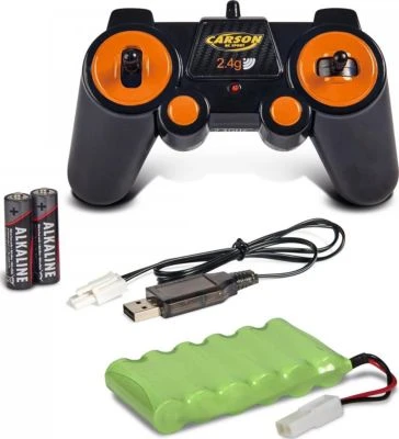 Die Legende lebt! Mit dem CARSON Jeep Wrangler im Maßstab 1:12 meisterst du so gut wie jedes Gelände. Dafür sorgen eine gesperrte Starrachse, die schlagfeste und robuste Karosserie sowie ein kräftiger Elektromotor, der den Jeep antreibt. Die griffig profilierten Gummireifen geben dem RC-Offroader die nötige Bodenhaftung. Der massive Frontrammer rundet den bulligen Auftritt ab, Front- und Heckleuchten ermöglichen ein Fahren bei Dunkelheit. Der ferngesteuerte CARSON Jeep Wrangler wird mit einem störungsfreien 2,4 GHz Fernsteuersystem, Senderbatterien, Modellakku und Ladegerät ausgeliefert und ist direkt nach dem Laden startklar. Kaufen – laden – fahren!