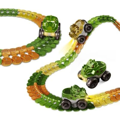Paket enthalten: Grün Dinosaurier-Achterbahn * 1 Dinosaurier-Autoschale * 1 vierfarbige Strecke * 184 Verbindungsstrecke * 1 Blaue Version mit 4-farbiger Schiene*184 Verbindungsschiene*1 Wagen*3