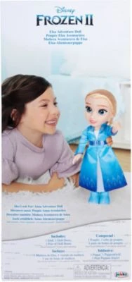 Anna, Elsa, Kristoff, Olaf und Sven erleben in „Die Eiskönigin 2“ viele spannende Abenteuer, von denen Kinder einfach fasziniert sind. Die bezaubernde Elsapuppe aus dem Hause Jakks Pacific ist Elsas Look aus dem beliebten Film nachempfunden. Sie trägt ein blaues Kleid, ihr schimmerndes Cape und passende Schuhe. Die langen blonen Haare sind zu einem Zopf geflochten. Die schöne Puppe eignet sich einfach klasse, um Szenen aus dem Film nachzuspielen.