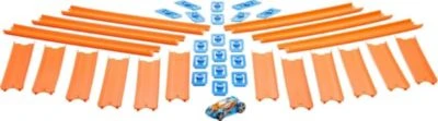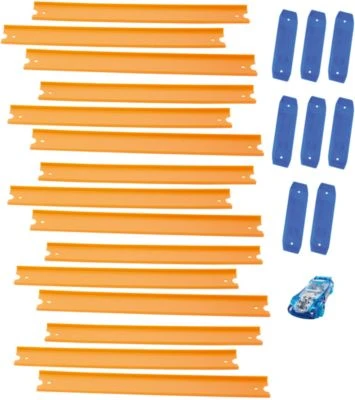 Einen so beeindruckenden Track mit ca. 4,5 Metern Länge hat man bei Hot Wheels noch nicht gesehen! Er besteht aus 12 ca. 23 cm langen und 6 ca. 30,5 cm langen Teilen sowie 18 Trackverbindungen.