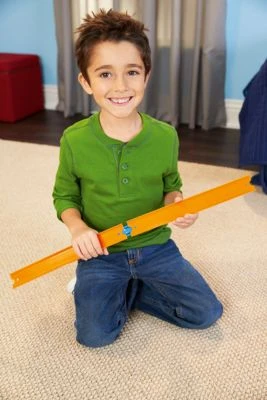 Jetzt braucht man nur noch sein Hot-Wheels-Fahrzeug über die Gerade Rennbahn rasen lassen, oder man testet die Geschwindigkeit anderer Fahrzeuge der eigenen Sammlung, um festzustellen, welches das Zeug zum Sieg hat. Lässt sich für jede Menge coole Stunt-Action mit anderen Hot-Wheels-Tracksets verbinden.
