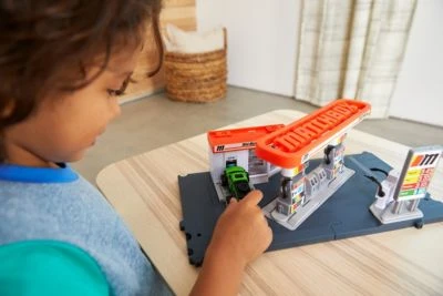 Das Matchbox Tankstellen Spielset hat alle Funktionen, die Kinder von echten Tankstellen kennen und gerne in ihr Spiel einbeziehen. Mithilfe der praktischen Verbindungsstücke an jeder Ecke kann das Spielset ganz leicht mit anderen Matchbox Action Driver Sets und Hot Wheels City Sets zusammengesteckt werden.