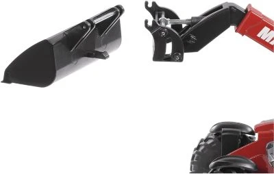 Der bewegliche Ladearm mit Volumenschaufel lässt sich beim SIKU 3067 Manitou MLT840 Teleskoplader ausziehen, um Schüttgut auch auf größere Anhänger zu laden.