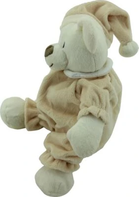 Bereit für das Bett? Der Kuschelbär von Sweety-Toys ist es auf jeden Fall. Er trägt bereits seinen Pyjama und die dazu passende Pudelmütze. Jetzt sucht er nur noch jemanden, der ihn auf der Reise ins Land der Träume begleiten möchte.